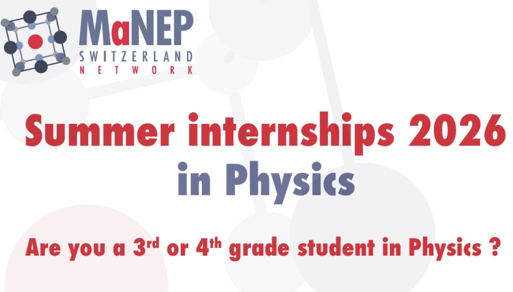 MaNEP offers 3rd and 4th year physics students the unique opportunity to work for a month this summer in one of the top research teams affiliated to the MaNEP Network, while receiving a financial support. Since 2004, these internships have successfully encouraged several of the participants to envisage a more ambitious career in physics.